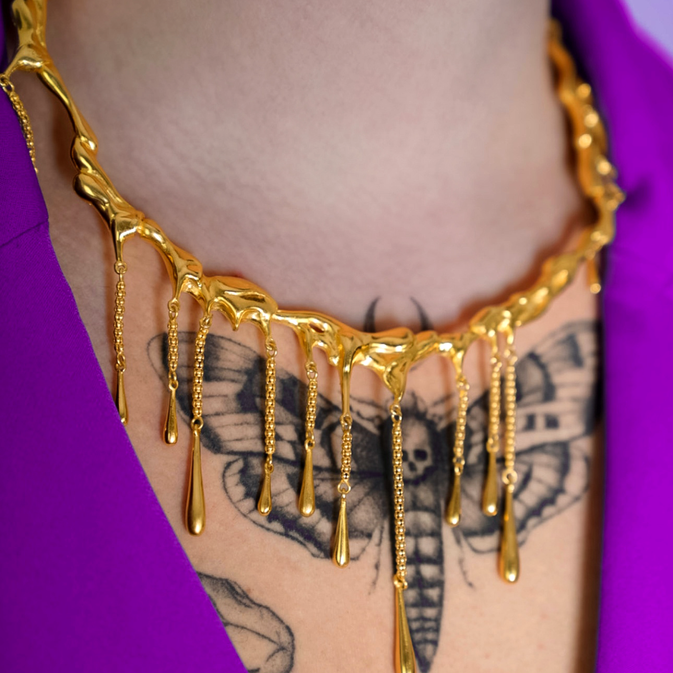 LIQUID LUCK to kolekcja biżuterii, która czerpie inspirację z magicznego eliksiru Felix Felicis z serii Harrego Pottera! Ten piękny naszyjnik, wykonany z mosiądzu i pozłacany 18-karatowym złotem, jest jak zawieszony kroplomierz, przenoszący ze sobą niepowtarzalną magię.