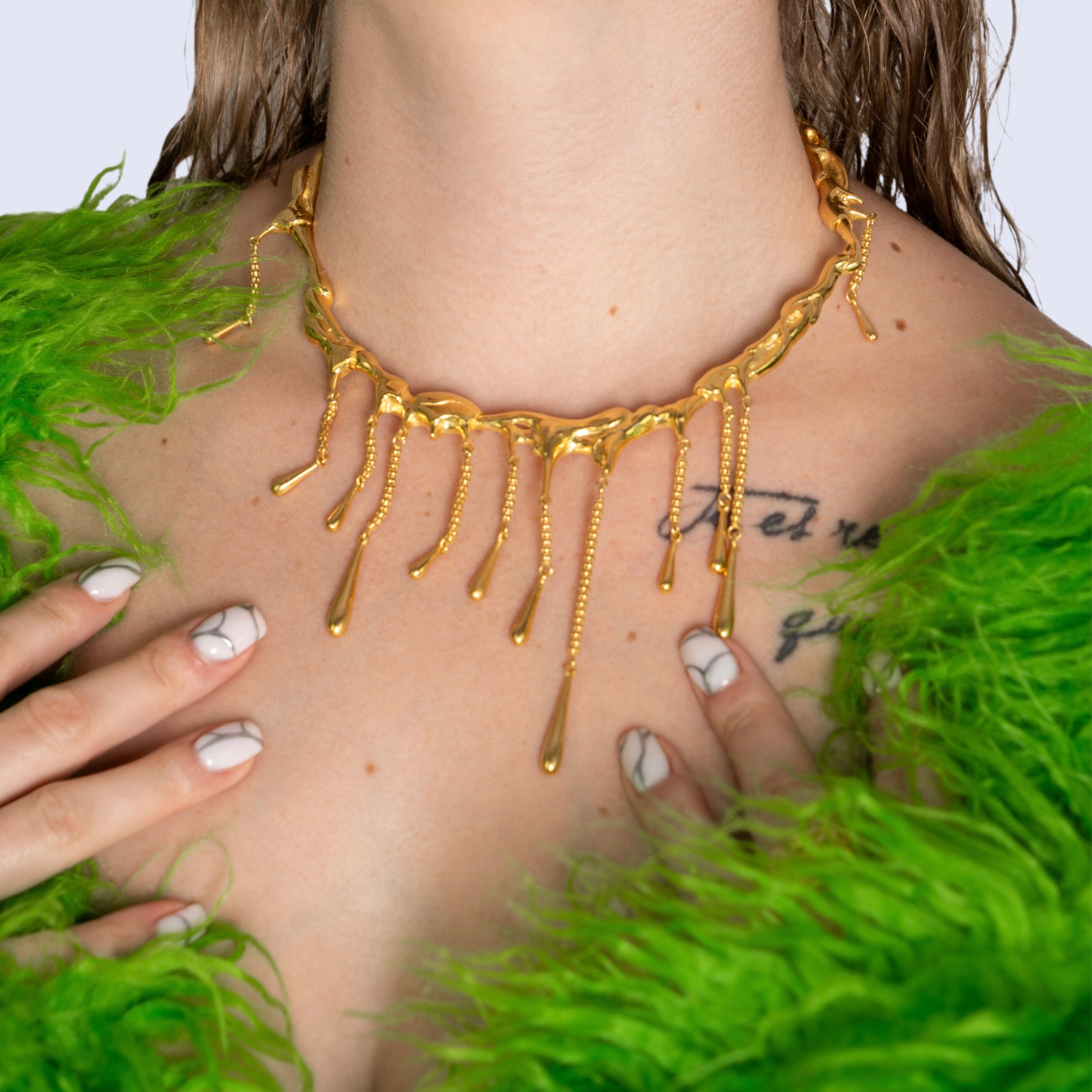 Jego subtelnie splecione nitki symbolizują naszą wewnętrzną moc, a delikatny kształt naszyjnika przypomina wyjątkowy klejnot, który emanuje indywidualnością i magią. Liquid Luck przypomina nam, że odwaga i wiara w siebie mogą przyciągnąć szczęście i pomóc w osiąganiu naszych najskrytszych marzeń.