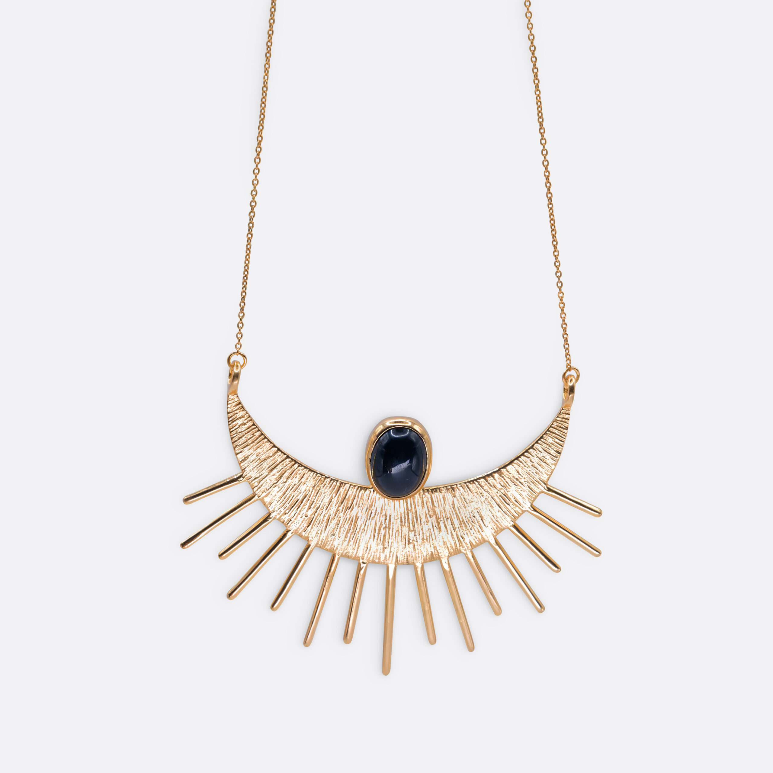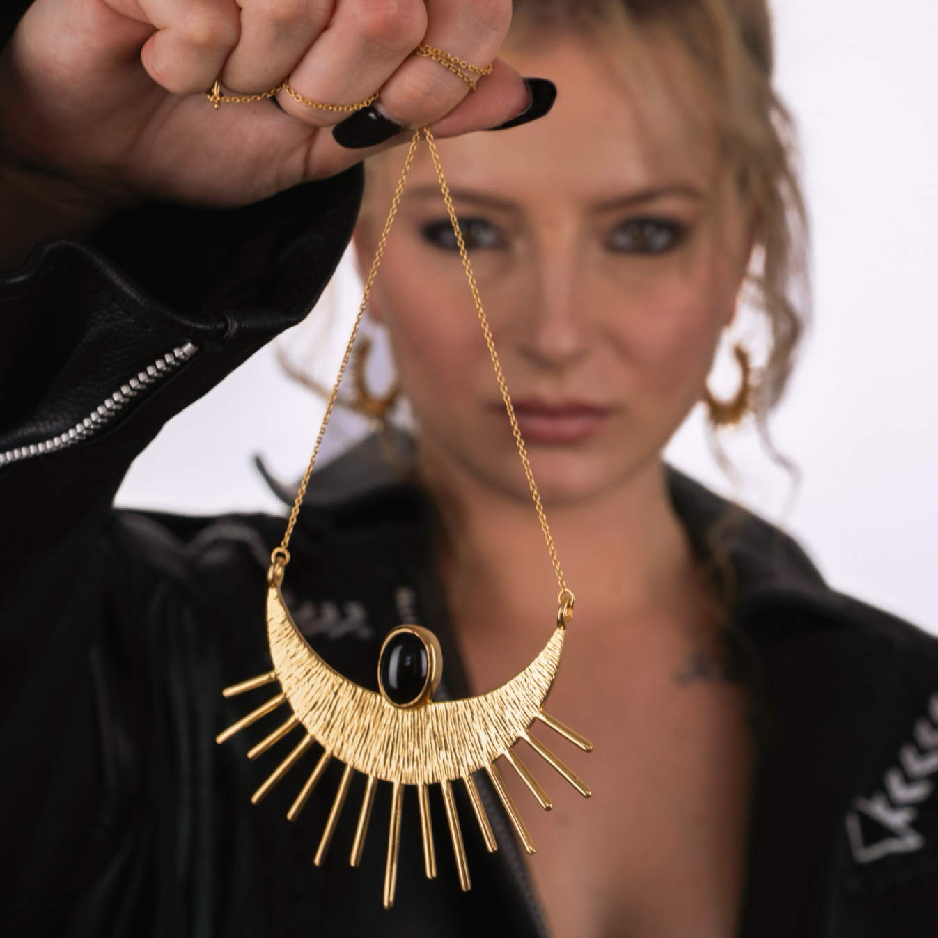 Ten potężny naszyjnik jest wykonany z mosiądzu i pokryty 18-karatowym złotem. Magiczny kamień, jakim jest obsydian, dodaje mu tajemniczej aury. To jakbyś nosił na szyi okno do innego wymiaru, oczyszczając negatywne energie i wzmacniając swoją intuicję.