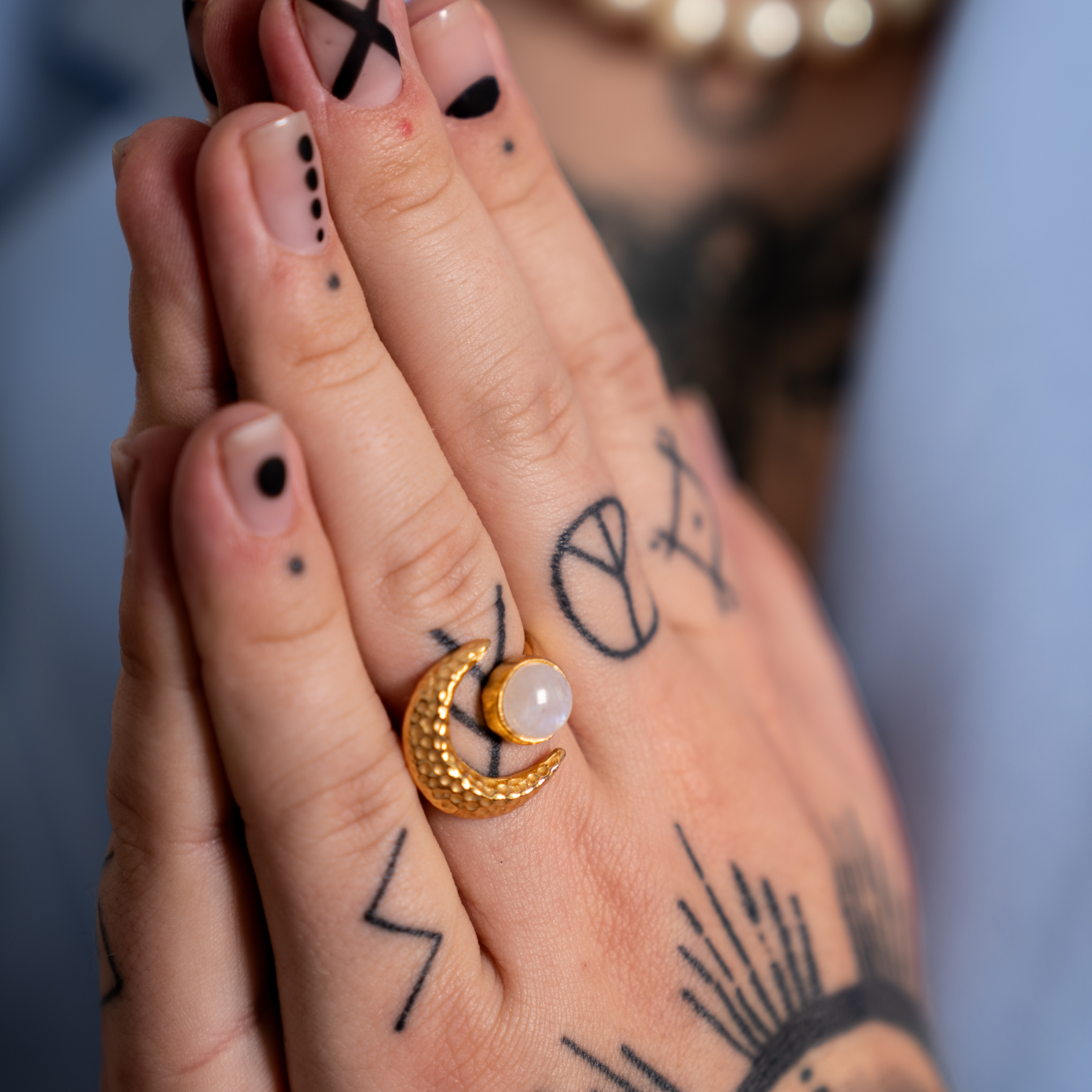 Pierścień emanuje magią kamienia księżycowego, który symbolizuje tajemnice, intuicję i podążanie za własnymi marzeniami.